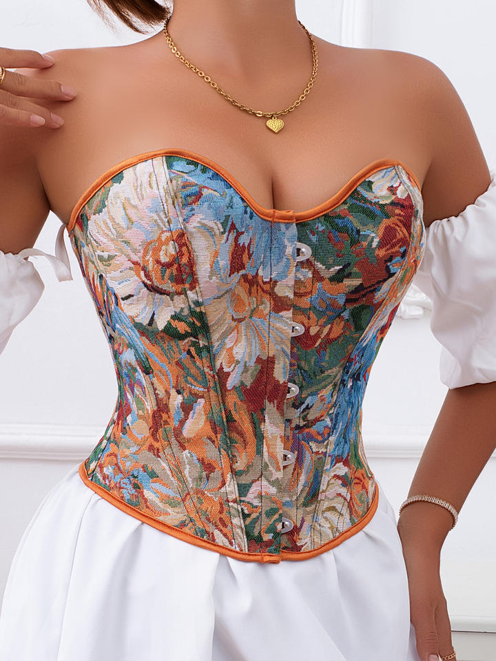 2025ล่าสุดเสื้อรัดทรงสตรีแบบย้อนยุคลายดอกไม้สุดหน้าอกสำหรับผู้หญิงเสื้อผ้าแฟชั่นสุดเซ็กซี่ตกแต่งร่างกาย
