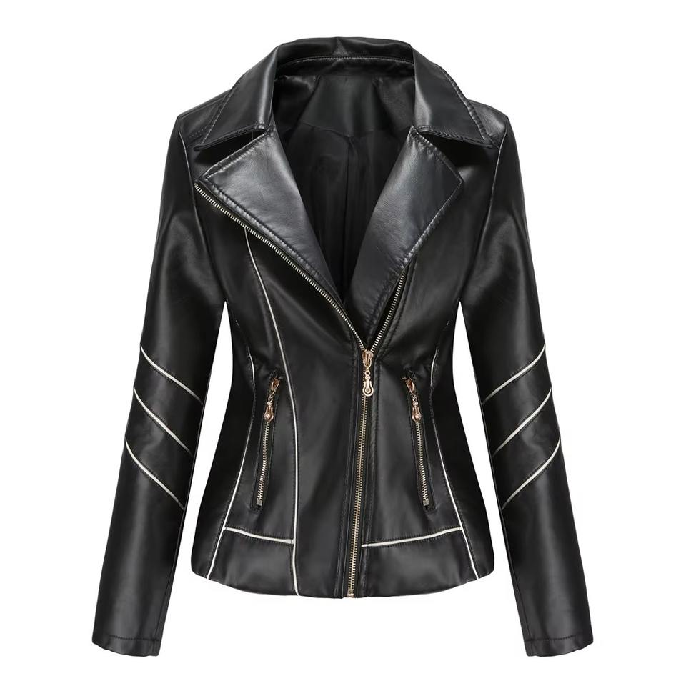 เสื้อแจ็คเก็ตหนัง2025สำหรับผู้หญิงเสื้อโค้ทสั้นหนัง PU เนื้อบางเหมาะสำหรับขี่มอเตอร์ไซค์ฤดูใบไม้ผลิและฤดูใบไม้ร่วงแจ็คเก็ตหนังสไตล์ใหม่ราคาถูกสุดหรู