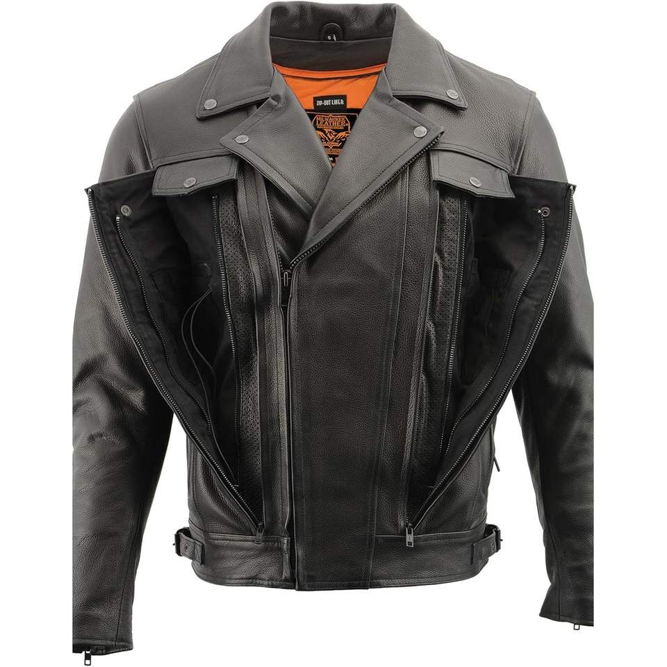 แจ็คเก็ตหนังแท้สำหรับผู้ชาย รุ่นปี 2025 ระดับไฮเอนด์ หนังวัวแท้แบบเปลือย มีช่องระบายอากาศ รุ่น MLM1520 สำหรับขี่มอเตอร์ไซค์และแข่งรถ