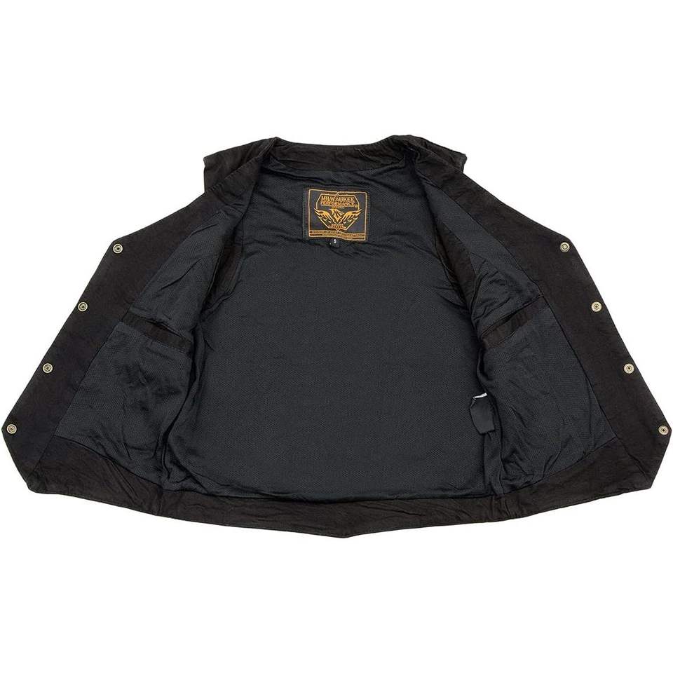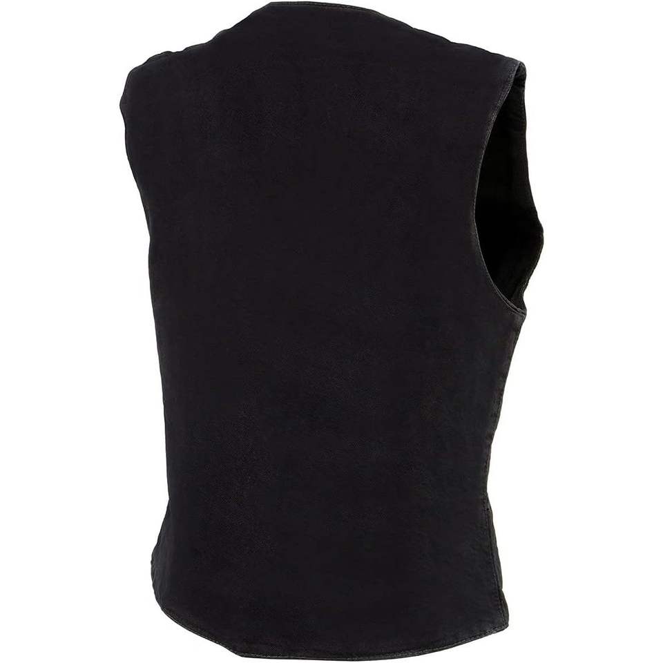 2025 Leather Women's Black Denim Motorcycle Rider Vest with 4-Snap Button Closure Auto Racing Wear