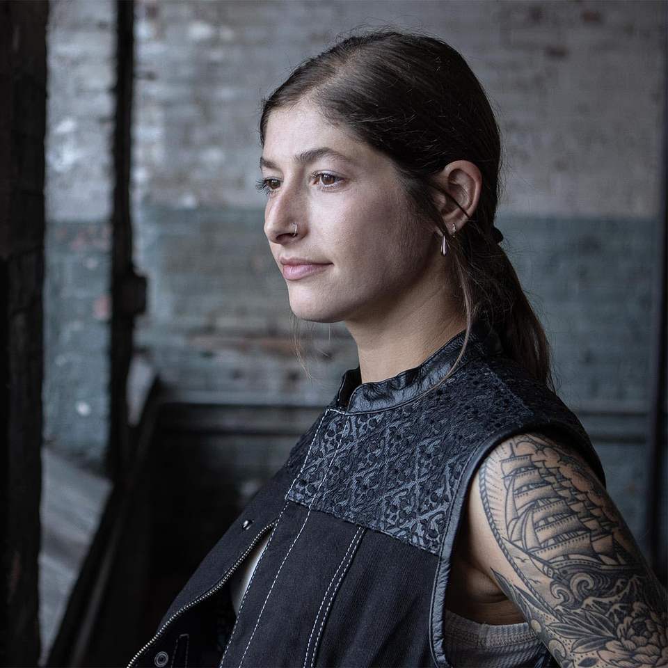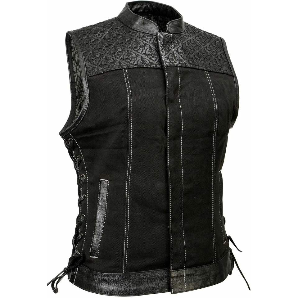 เสื้อกั๊กผ้ายีนส์หนัง2025สำหรับผู้หญิงสีดำมี MDL4052ปักลายกะโหลก
