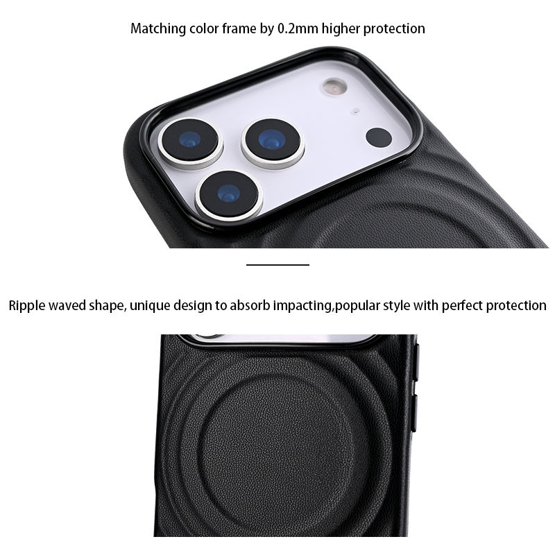 2025การออกแบบให้มีน้ำหนักเบามีในสต็อกเคสหนัง PU ripple Nappa 38แม่เหล็กแข็งแรงเลนส์มุมกว้างสำหรับ iPhone 17 PRO MAX