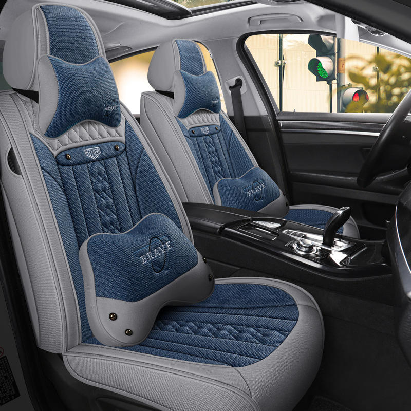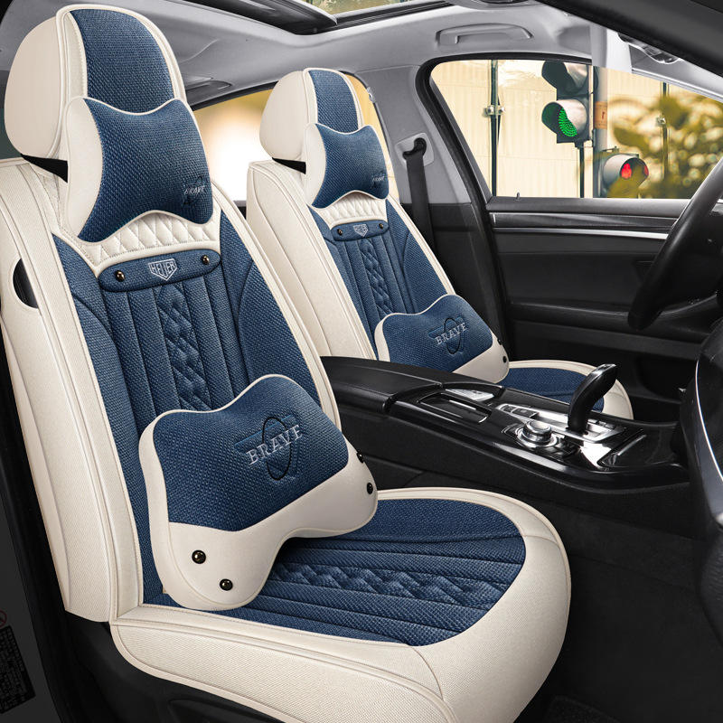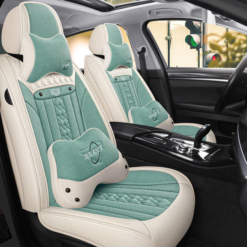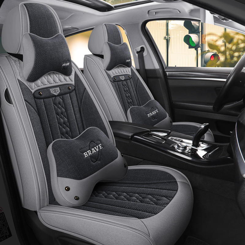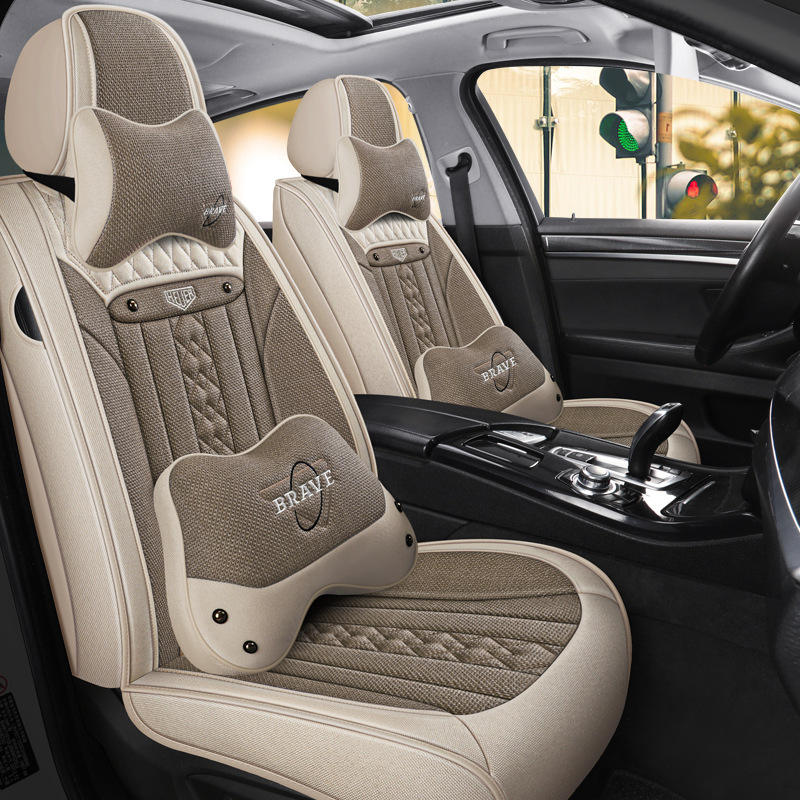 เบาะรองนั่งในรถยนต์ผ้าลินิน2025สบายระบายอากาศได้เต็มที่คลุมด้วยผ้าทุกฤดูกาล