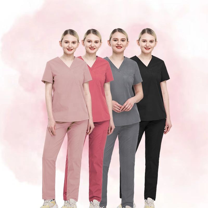 ชุดเสื้อกางเกงคอวี2025ทรงหลวมชุดวิ่งพยาบาลสำหรับผู้หญิงชุดวิ่งโรงพยาบาลแบบกำหนดเองชุดยูนิฟอร์มโรงพยาบาลสั้น