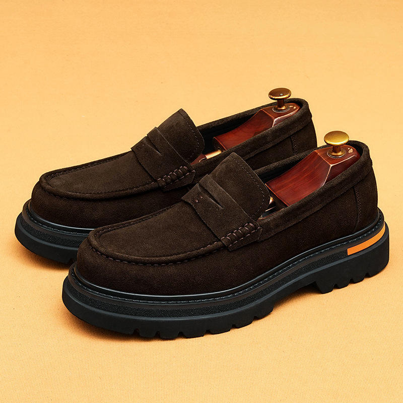 รองเท้าแต่งงานลำลองหนังวัวแท้หัวรอบเท้าหนา2025หรูหราปรับแต่งได้แบบทางการกันน้ำระบายอากาศได้ดี