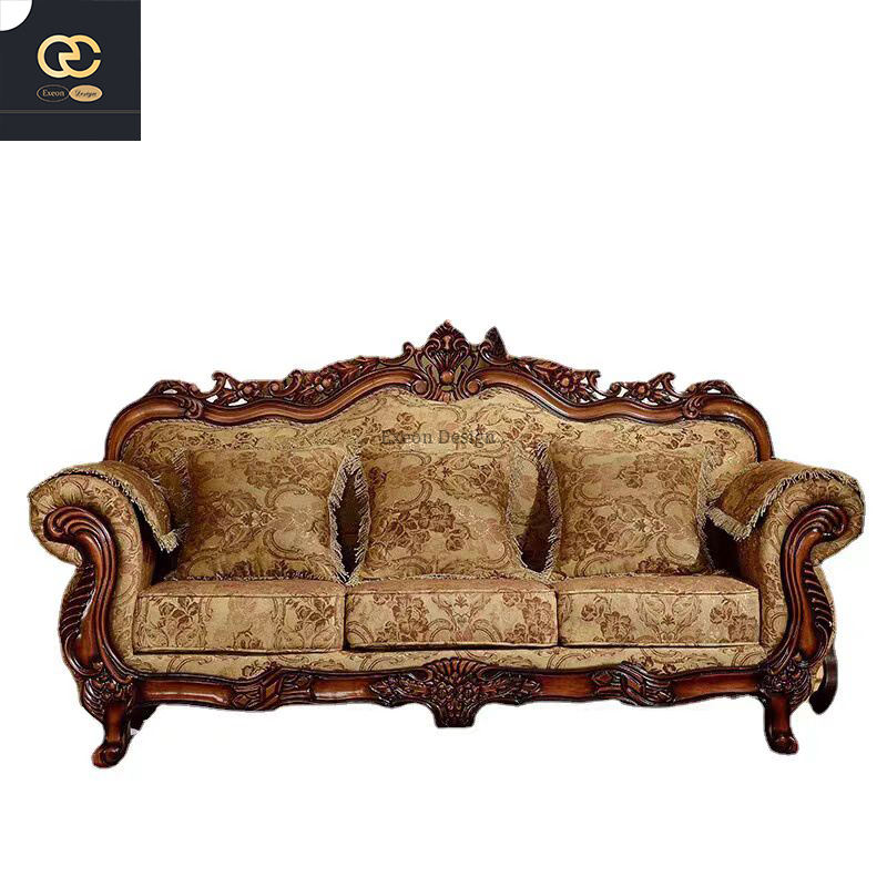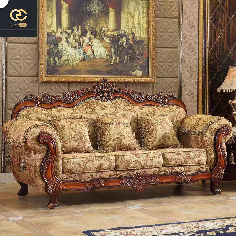 2025 Luxury European Classical Design Carved Sofa High Quality Luxury Living Room Combination Villa Upholstered New Style Cloth