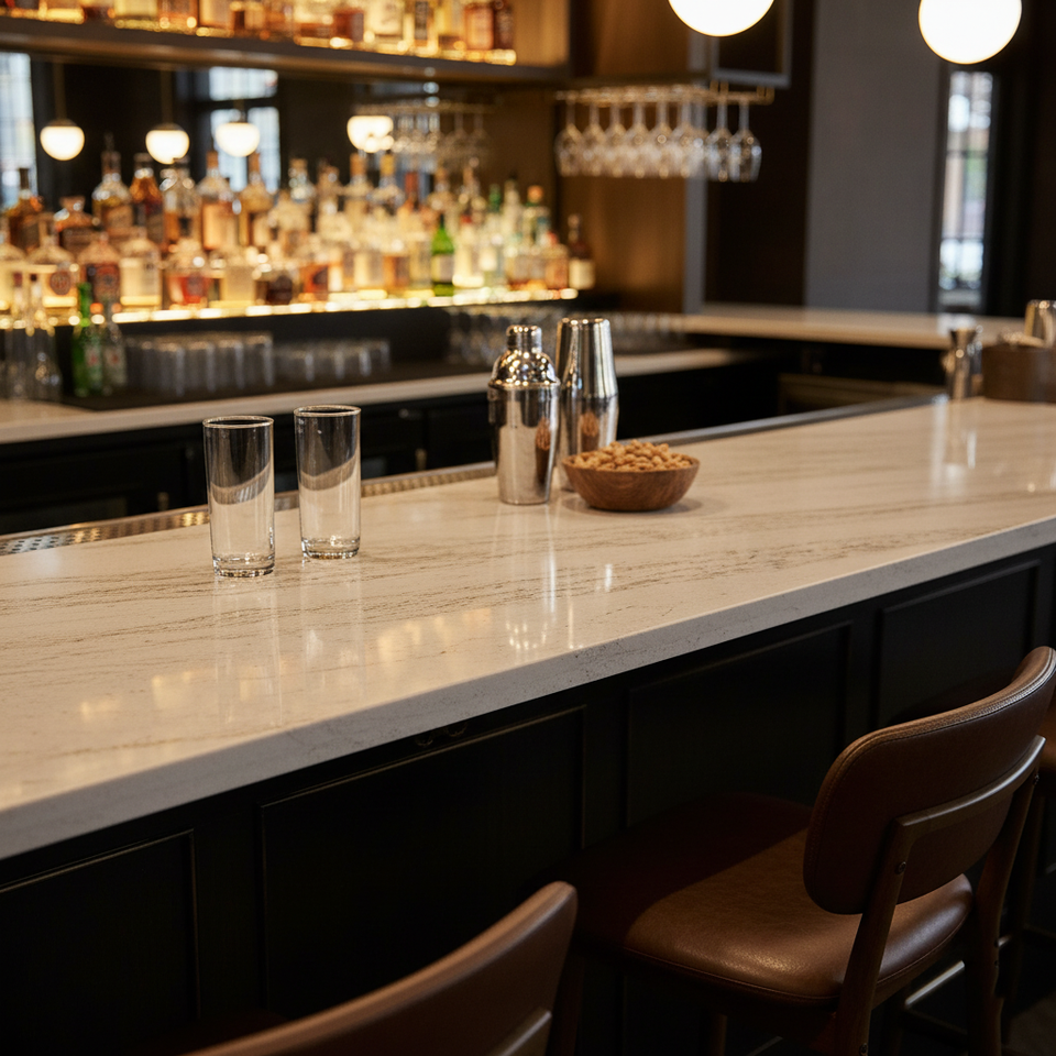 เคาน์เตอร์หินอ่อนควอทซ์ทนทานต่อรอยขีดข่วนพื้นทางวิศวกรรมสีทองทองหรูหรา2025สำหรับวางบนโต๊ะในครัวและบาร์