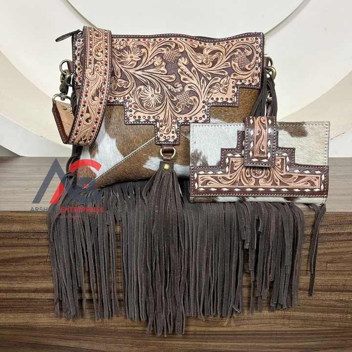 ชื่อผลิตภัณฑ์:กระเป๋าหนังมีพู่แบบมือและกระเป๋าสตางค์แบบพับสองพับหนังวัว