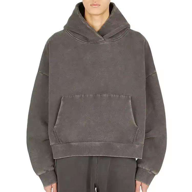 เสื้อฮู้ดดี้วินเทจทรงโอเวอร์ไซส์สุดหรูสำหรับผู้ชาย ปี 2025 ผ้าหนา 450 กรัม ผ้าฝ้าย 100% ทรงบ็อกซี่ ตัดสั้น ล้างสีแบบแอซิด เหมาะสำหรับฤดูหนาว