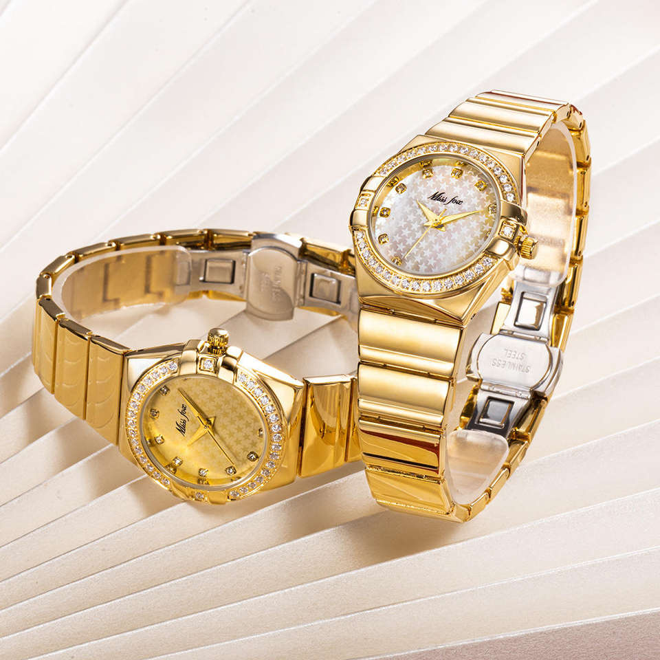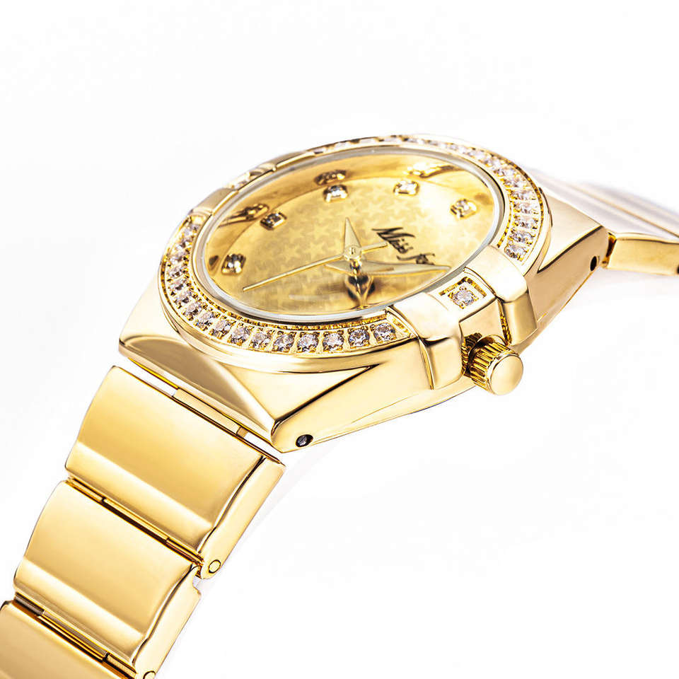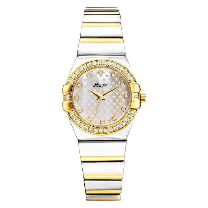 นาฬิกาข้อมือ MISSFOX รุ่น Gold ปี 2025 แบรนด์แฟชั่น ประดับเพชรเทียม สำหรับผู้ชาย Xfcs และผู้หญิง Superstar สายหนังแท้ กันน้ำ