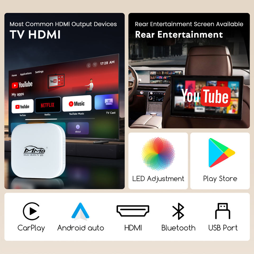 2025 MMB Ai BOX 4 + 32GB อะแดปเตอร์ CarPlay อะแดปเตอร์ Android กล่องอัตโนมัติ Android กล่องวิดีโออะแดปเตอร์ CarPlay ไร้สาย YouTube Android 12