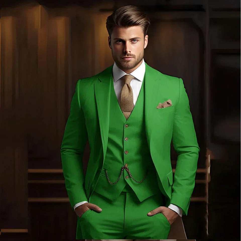2025 Male Fashion Suit Jacket Pants Vest Formal Khaki Wedding Tuxedo Slim Fit 3-Piece Groom Wear for Men