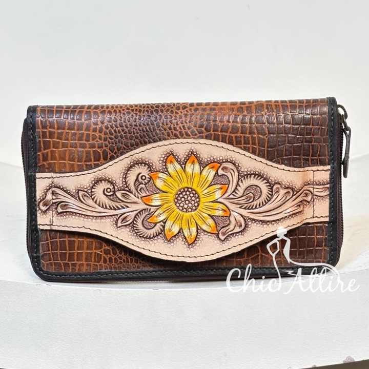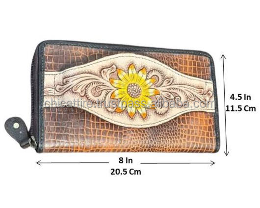 Product name:Crocodile Pattern Hand Tooled Leather Zipper Clutch