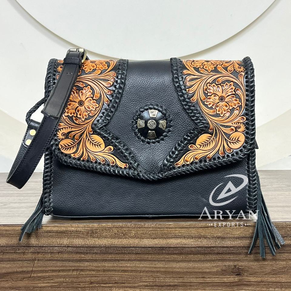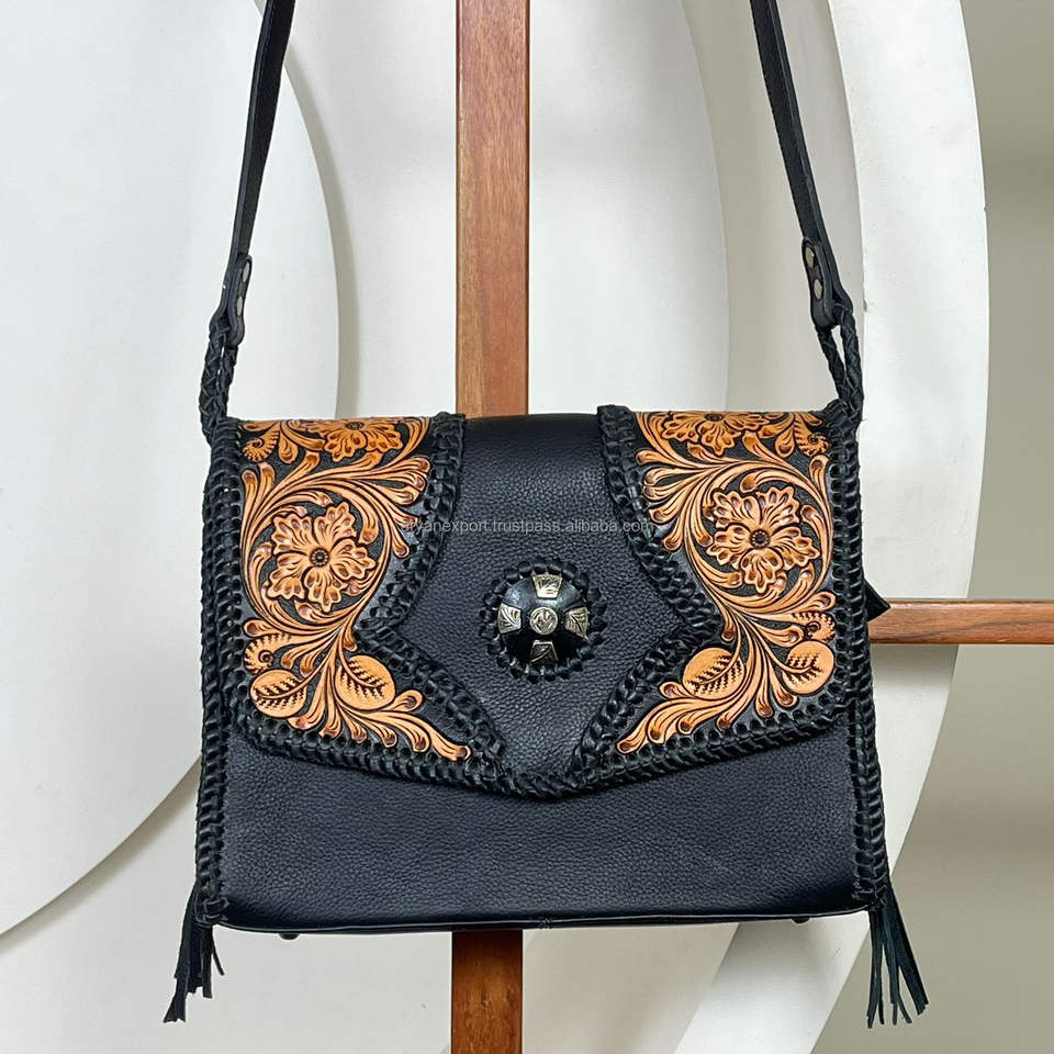 Product Name:Hand Tooled Cowhide Leather Handbag