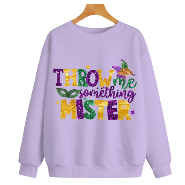 2025เสื้อสเวตเชิ้ตมาร์ดิกราส์ลาเวนเดอร์พร้อมเลื่อม100% ทำมือผ้าฝ้ายออกแบบตามสั่งผู้ผลิตในอินเดีย