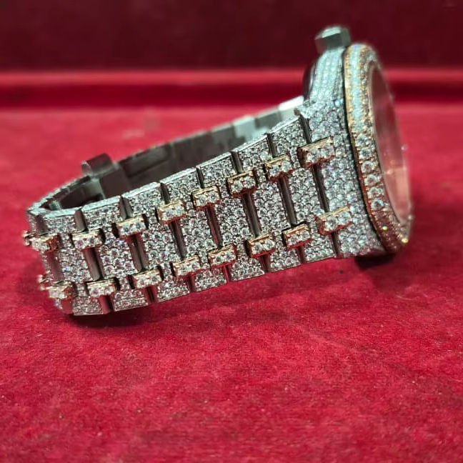 เครื่องทดสอบเพชรแบบอัตโนมัติ รุ่นปี 2025 ขนาด 40 มม. สไตล์ฮิปฮอปโบราณ ประดับเพชร VVS มอยส์ซาไนต์ พร้อมหน้าปัดคริสตัลแซฟไฟร์ สายหนัง