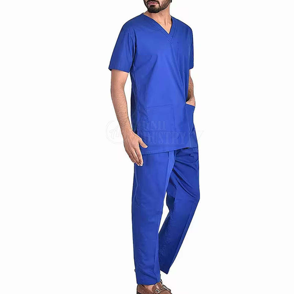 2025 Men's Medical Scrub Uniforms 100% Cotton Breathable Comfortable Lightweight High Quality Hospital Use Wholesale Custom Made