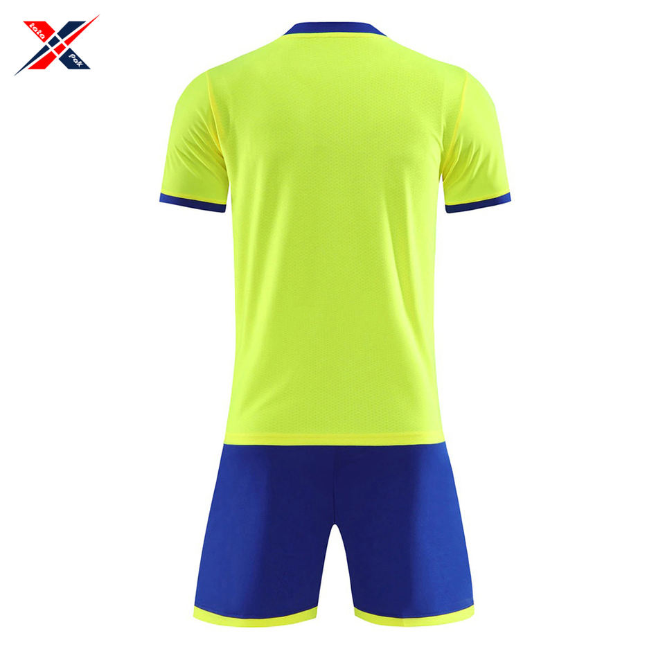 ชุดเล่นฟุตบอลสำหรับผู้ชายชุดเล่นฟุตบอลผ้าโพลีเอสเตอร์100% ระบายได้ดีดีไซน์ใหม่