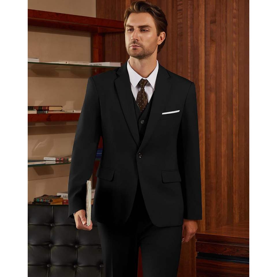 ชุดสูทเข้ารูป3ชิ้นของผู้ชาย2025เสื้อแจ็กเก็ตกระดุมแถวเดียวพร้อมกางเกงทักซิโด้สำหรับงานแต่งงานธุรกิจ