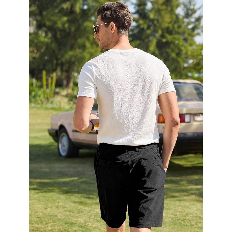 2025ชุดเดรสผ้าลูกฟูกสำหรับผู้ชาย, ชุดเดรสสั้นสไตล์สตรีททรงสูงยืดได้น้ำหนักเบามีกระเป๋าขนาด XS XXS 2XL