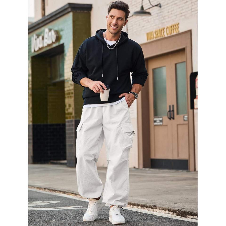 2025กางเกงคาร์โก้ทรงหลวมแนวสตรีทสำหรับผู้ชายกางเกงทรงหลวมทำจากผ้าฝ้ายมีกระเป๋าทรงลำลองแนวสตรีท XL สำหรับ100%