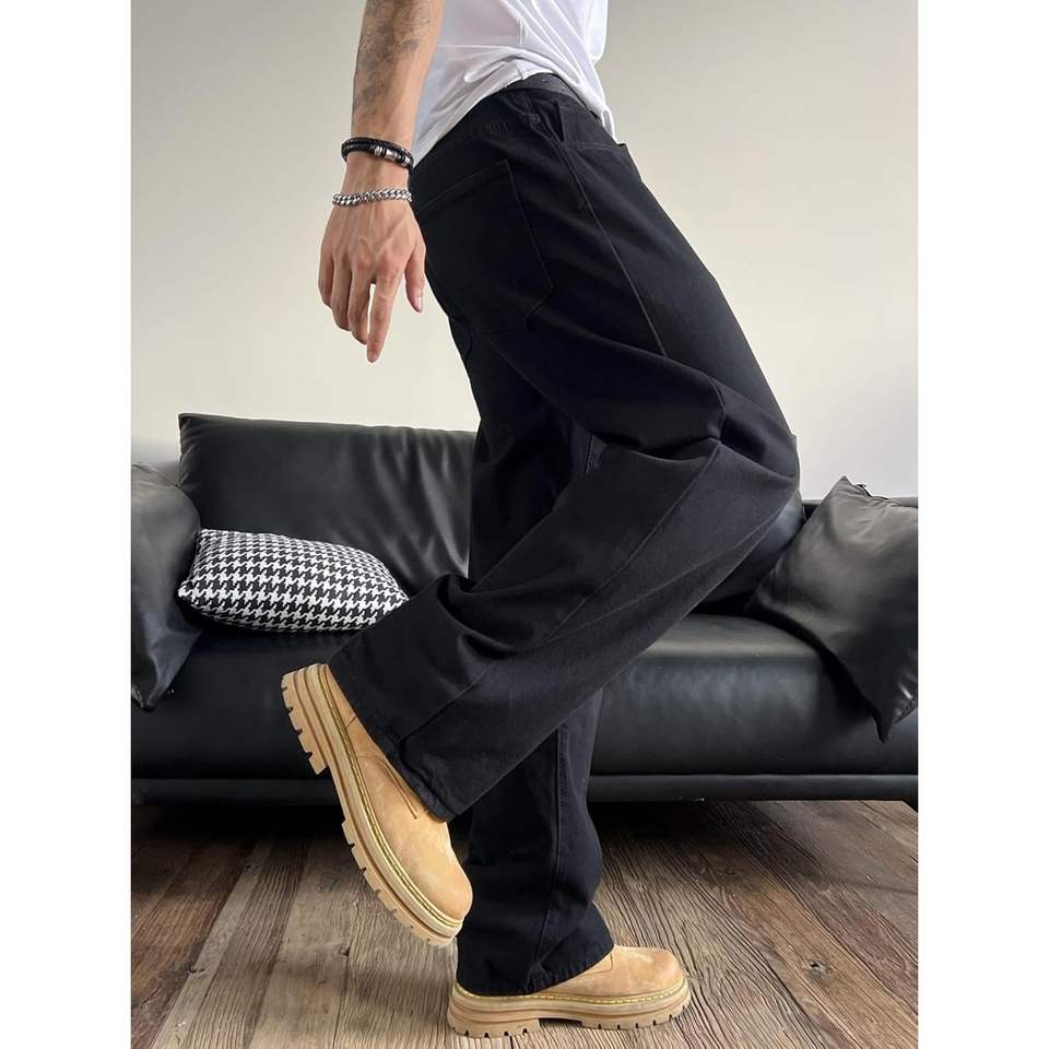 2025 Men's Baggy Straight Leg Trousers Y2K Skater Style Denim Pants with Loose Fit Hip Hop Inspired Jeans