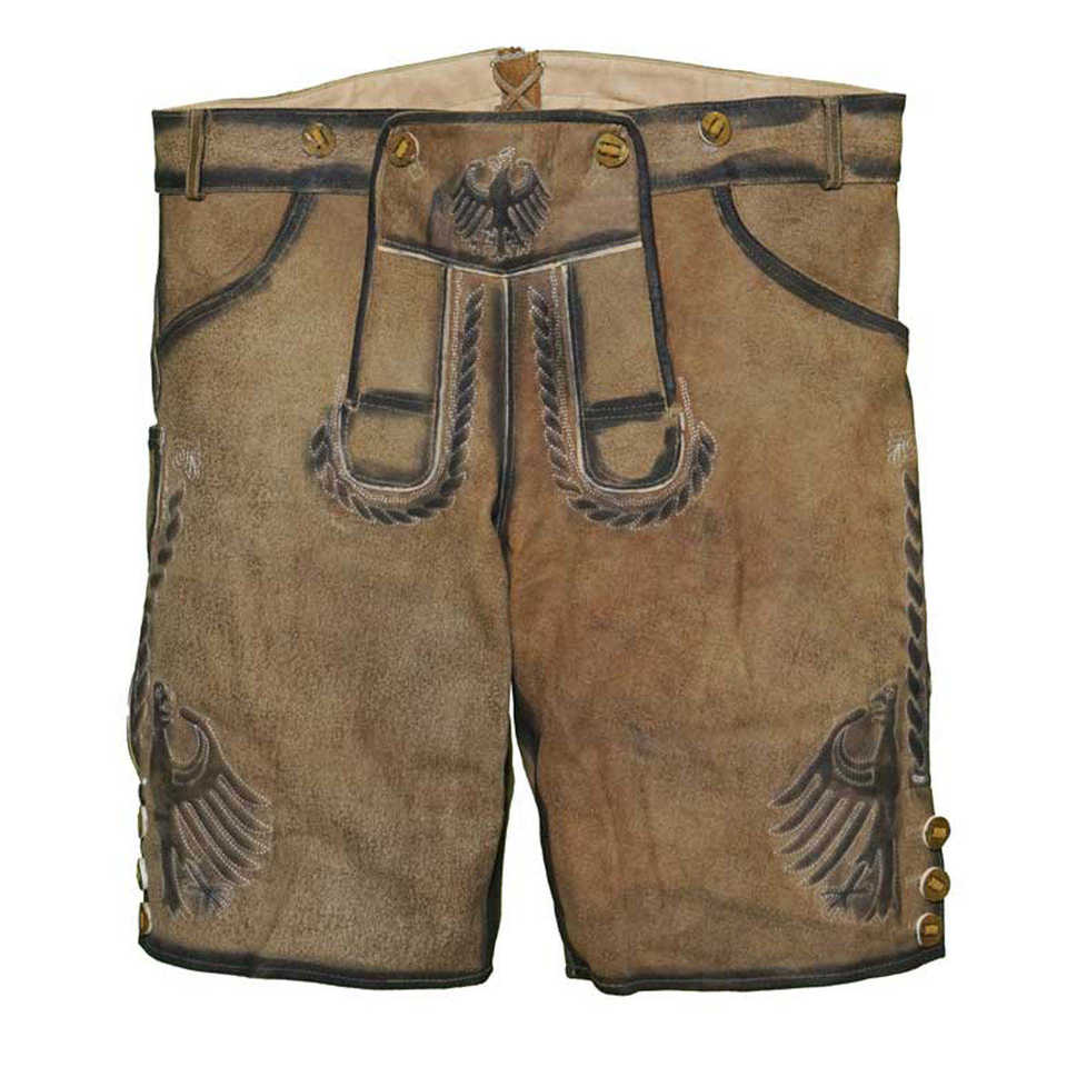 2025 lederhosen แบบบาวาเรีย Oktoberfest lederhosen ขายดีที่สุดกางเกงขาสั้นลำลองหนังแท้ยาวถึงเข่าป้องกันริ้วรอย