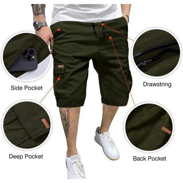 2025กางเกงคาร์โก้ผ้าฝ้าย100% ทอลายทแยงสำหรับผู้ชาย, กางเกงขาสั้นเอวยางยืดแบบผูกเชือกถักทอแบบลำลอง