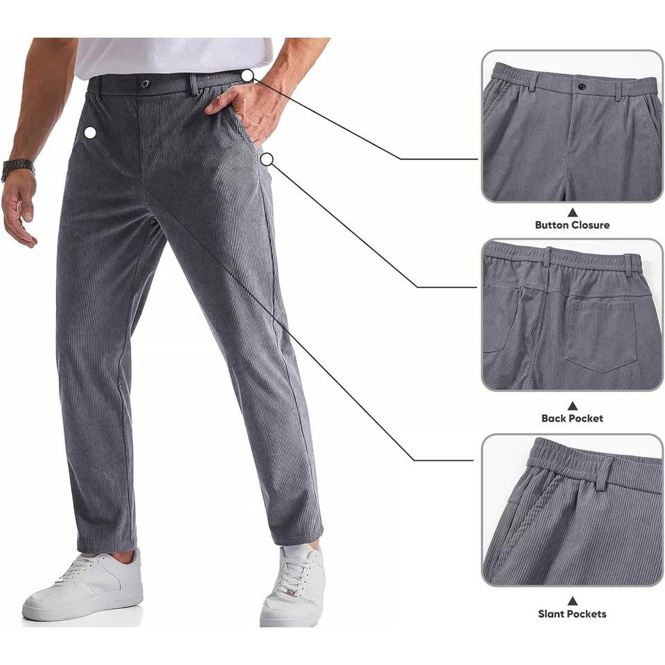 2025 Men's Casual Camouflage Corduroy Pants Flat Front Elastic Waistband Straight Leg Slim Fit Dress Pant with Pockets