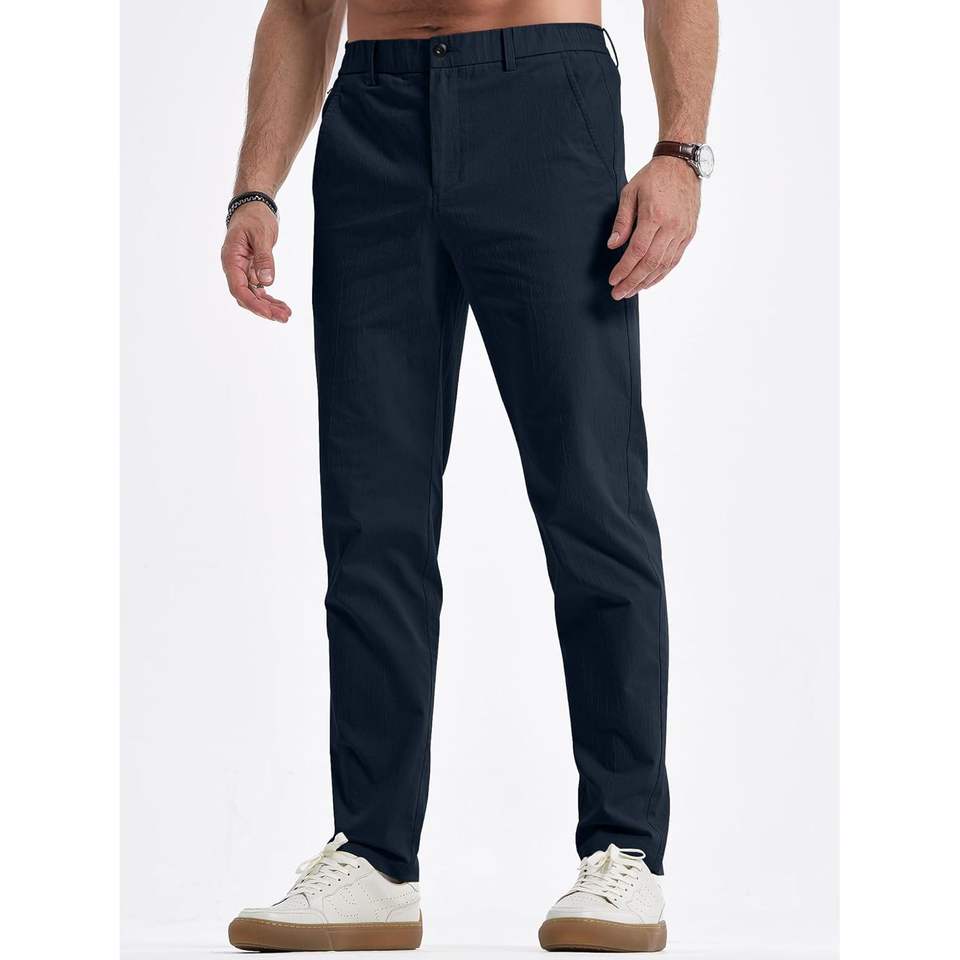 2025กางเกงผ้าชิโนแบบลำลองของผู้ชายผ้ายืดเอวยางยืดแบบย่น4ทางมีกระเป๋าซิปมีกระเป๋าขนาด XL