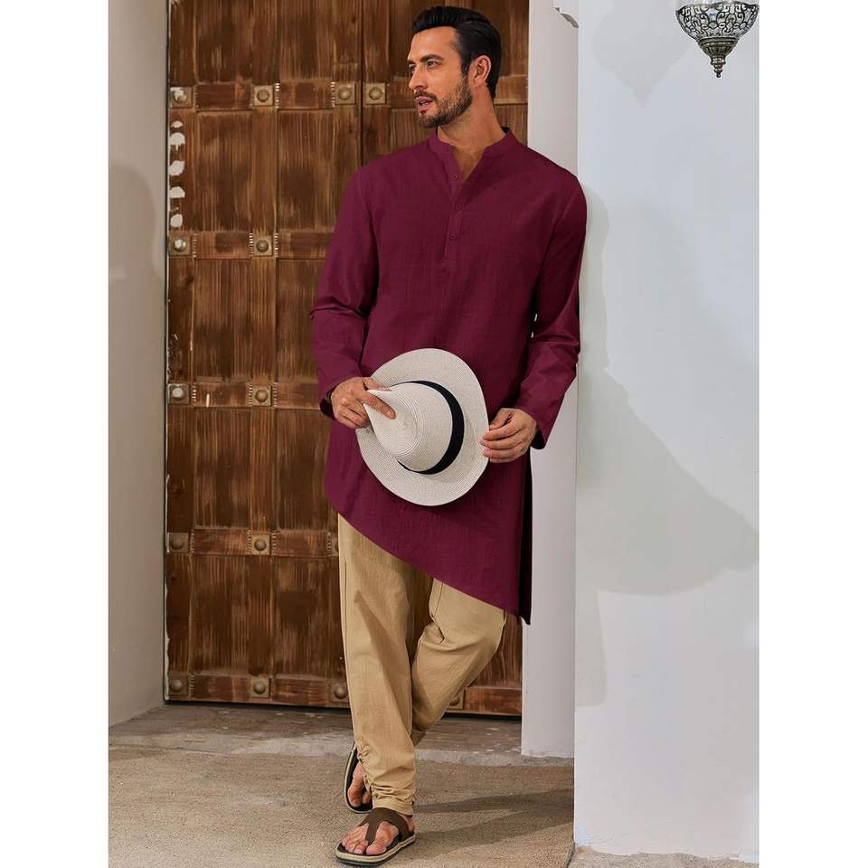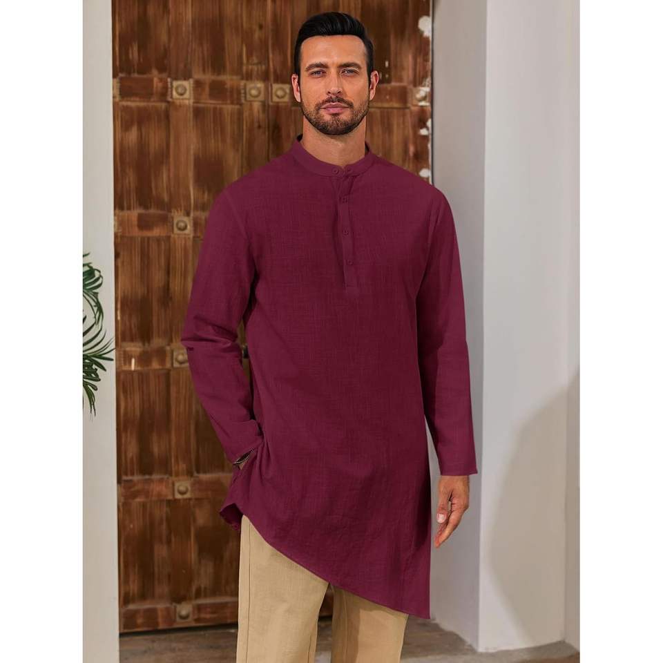 2025ชุดคลุมคาฟตันแขนยาวผู้ชาย, เสื้อผ้าสไตล์ลำลองแขนยาวผ้าคอตตอนพร้อมเสื้อคลุมสไตล์มุสลิม