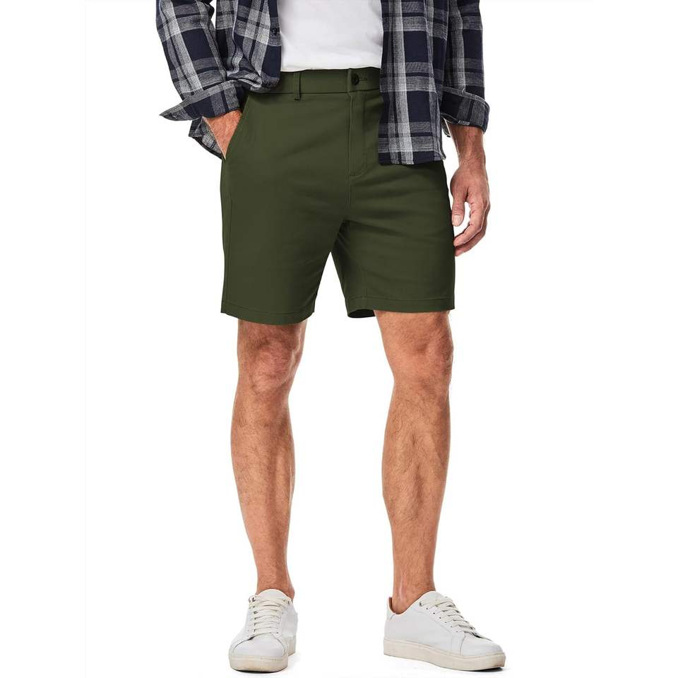 2025กางเกงคาร์โก้ผู้ชายผ้าฝ้ายทอลายทแยง, กางเกงขาสั้นรัดน่องผ้ายืด2-in-1โลโก้ผ้าย้อมสีเรียบยาว5นิ้ว