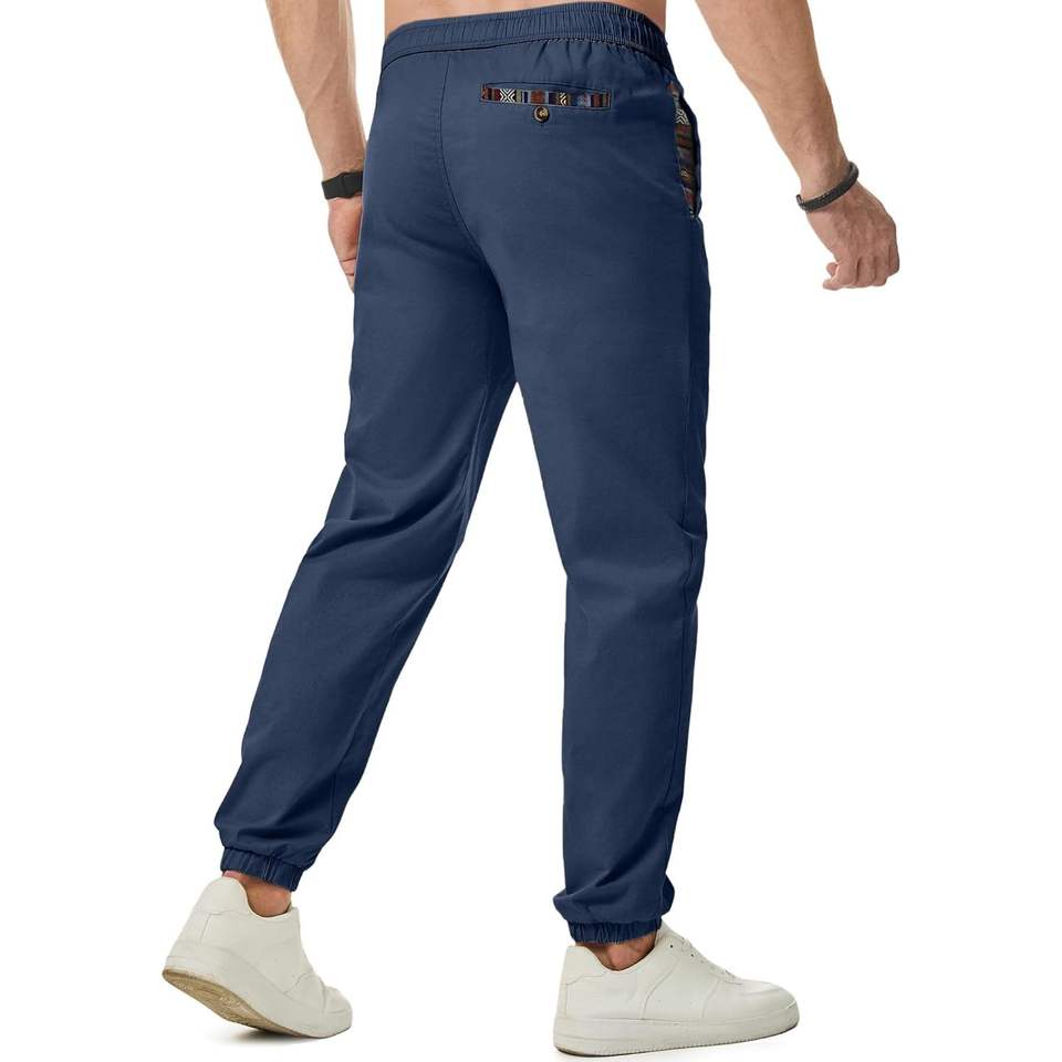 2025กางเกงวิ่งผู้ชายผ้าฝ้ายทอลายทแยงเอวยางยืดพร้อมกระเป๋าเรียวปรับแต่งโลโก้สีได้