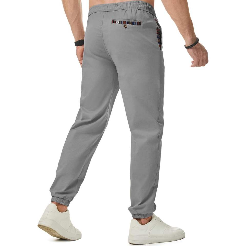 Jmierr กางเกงวิ่งสำหรับผู้ชาย, กางเกงผ้าฝ้ายทอลายทแยงเอวยางยืดมีกระเป๋าดีไซน์ทรงเรียวปรับแต่งโลโก้สีซักได้