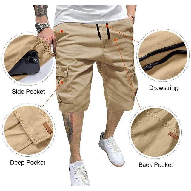 2025กางเกงคาร์โก้ผู้ชายผ้าฝ้ายทอลายทแยง, กางเกงขาสั้นรัดน่องผ้ายืด2-in-1โลโก้ผ้าย้อมสีเรียบยาว5นิ้ว
