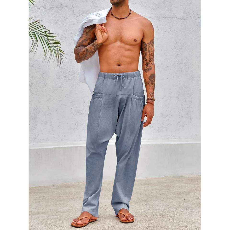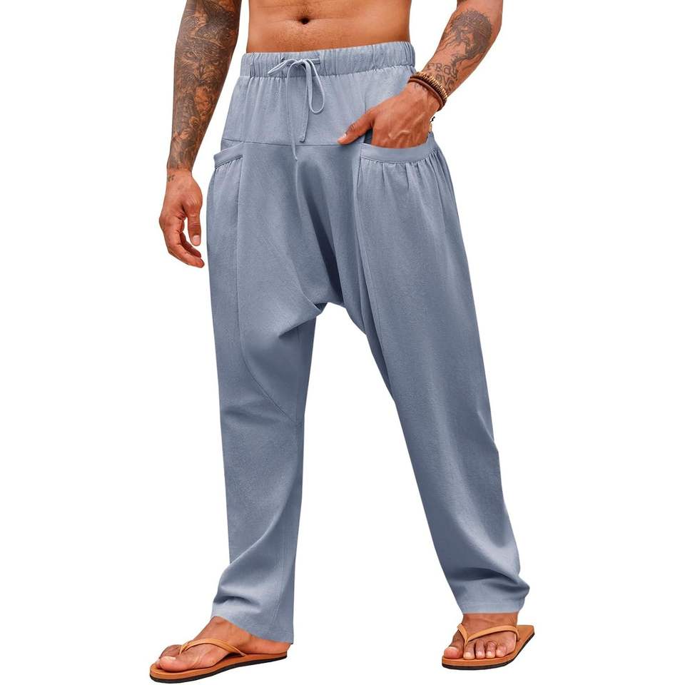 กางเกงฮาเร็มแบบลำลองสำหรับผู้ชาย2025กางเกงผ้าฝ้ายเอวยางยืดเสื้อผ้าเล่นฟิตเนสเล่นโยคะ