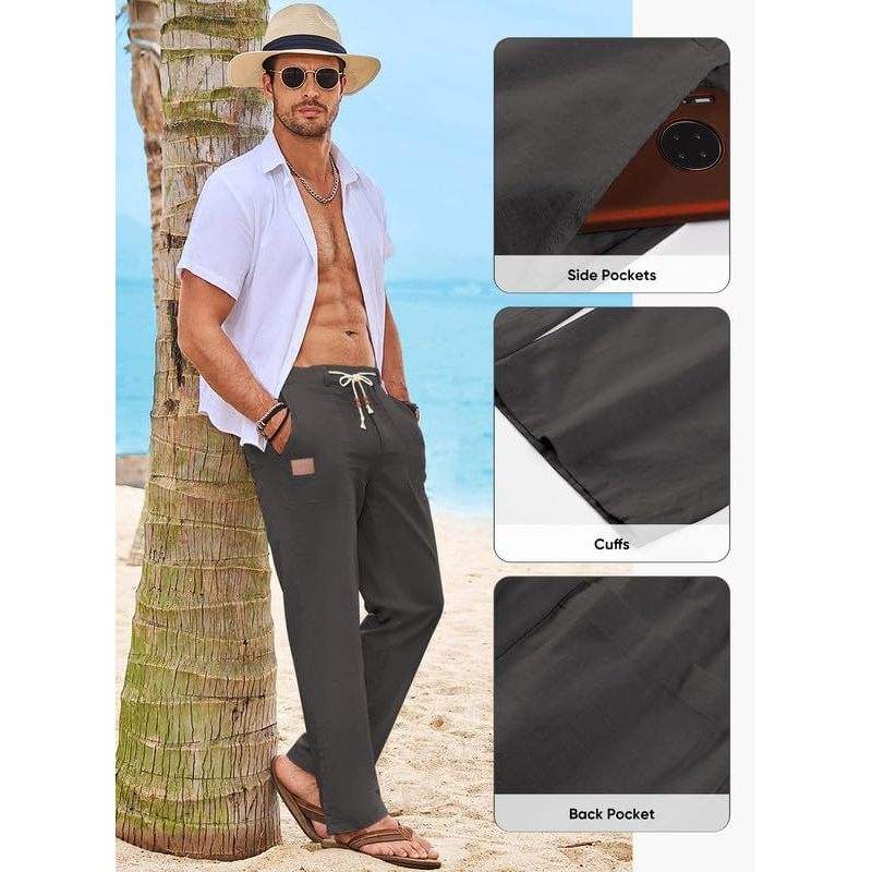 กางเกงผ้าลินินแนวลำลองของผู้ชาย2025กางเกงเอวยางยืดขาตรงเข้ารูปผ้าฝ้าย100% ปรับแต่งได้สำหรับ6XL ชายหาดในฤดูร้อน