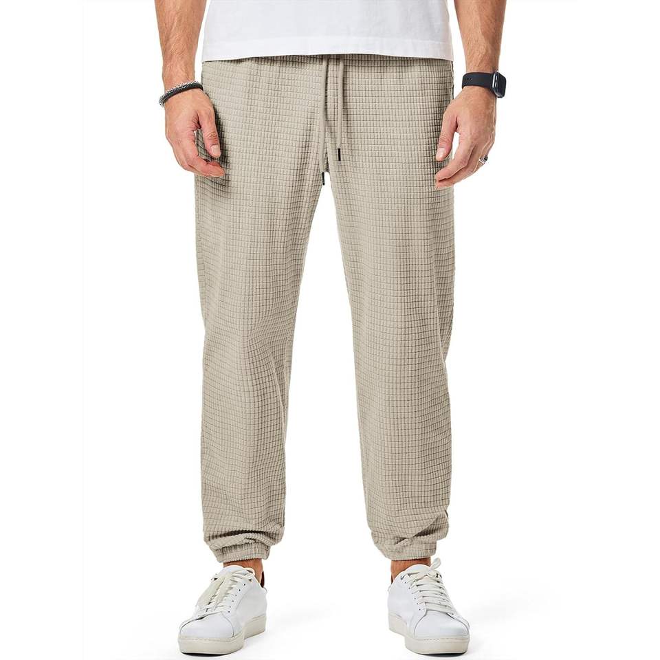Jmierr กางเกงลำลองสำหรับผู้ชายกางเกงแบบผูกเชือกเนื้อผ้าวาฟเฟิลผ้าฝ้าย100% จ็อกเกอร์พร้อมซิปยืดเอวยางยืดตกแต่ง6XL ขนาด