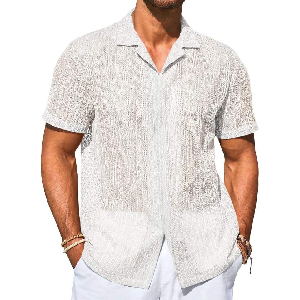 2025เสื้อลำลองแขนสั้นมีกระดุมสำหรับผู้ชาย, เสื้อ100% คอตตอนคิวบาเสื้อชายหาดมีรูขนาด6XL