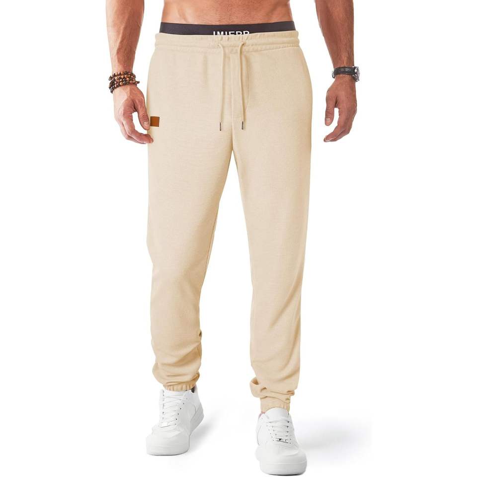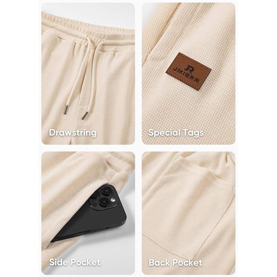 2025กางเกงลำลองขายาวสำหรับผู้ชาย, กางเกงวาฟเฟิลเอวยืดเชือกรูดและมีกระเป๋าเสื้อผ้ายิมนาสติก