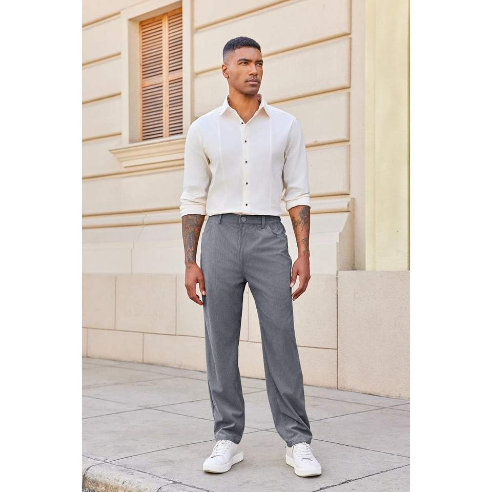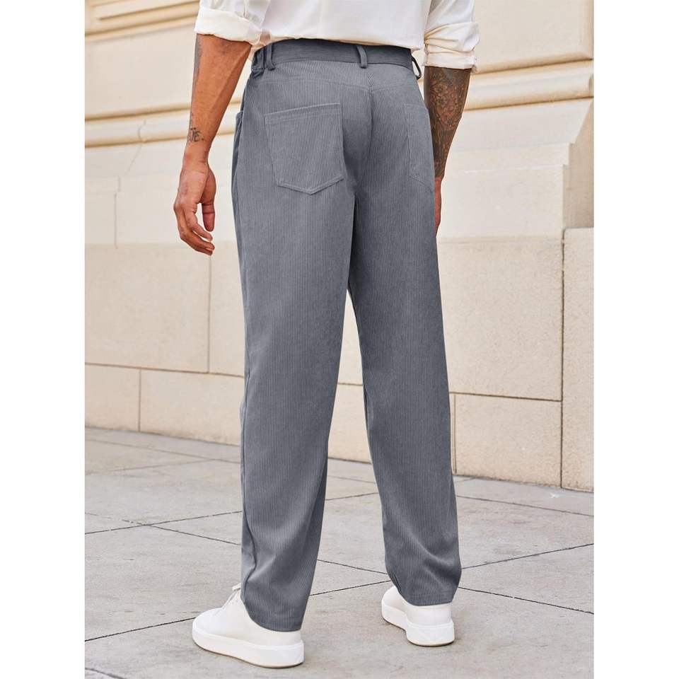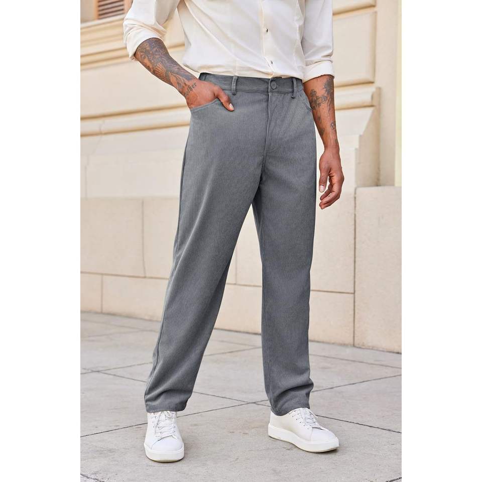 กางเกงผ้าลูกฟูกของผู้ชาย2025ทรงหลวมพร้อมโลโก้กำหนดเองได้ขาตรงเอวยางยืดมีซิปตกแต่งกันรอยยับ