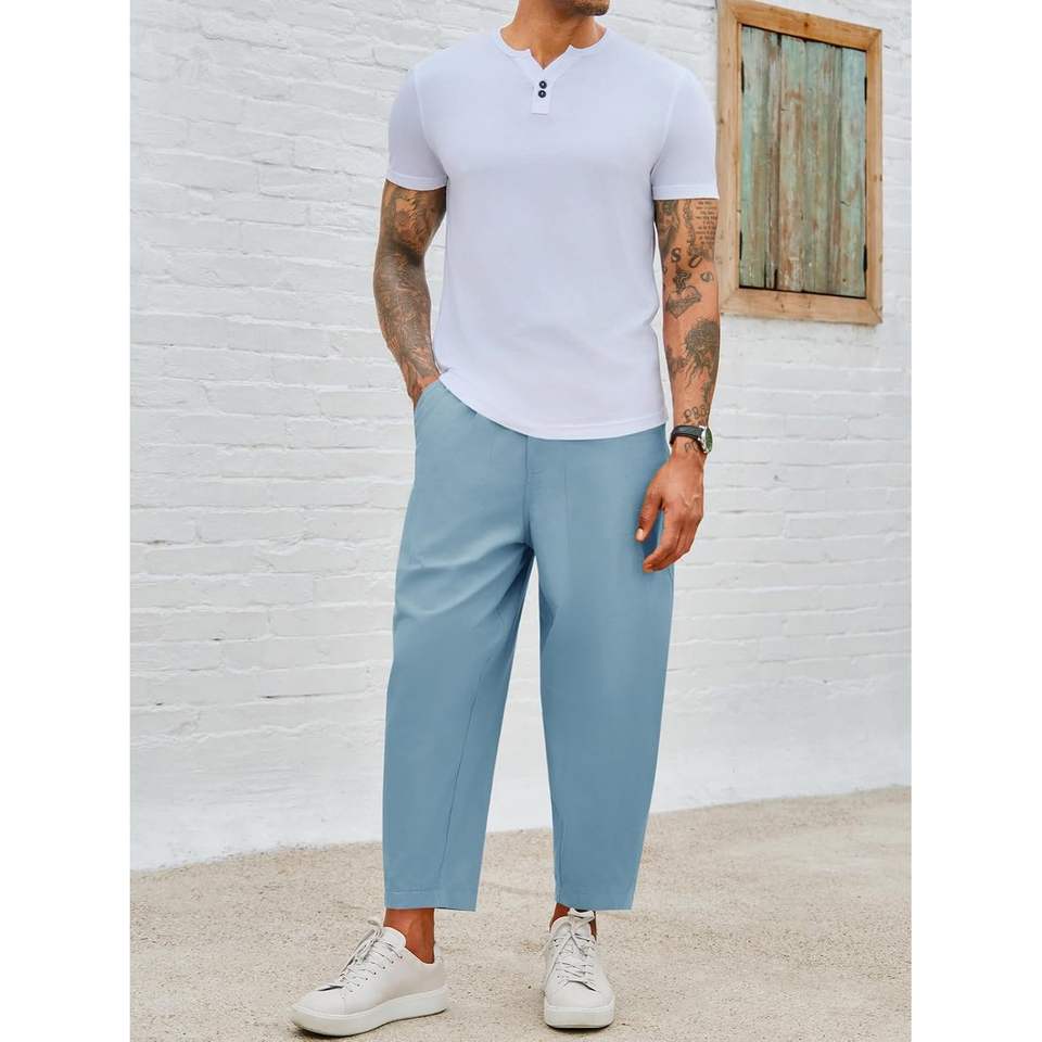 2025กางเกงคาปรีผ้าฝ้ายผู้ชายกางเกงขาสั้น3/4ทรงหลวมผ้าชิโนชายหาดมีเชือกผูกปรับแต่งโลโก้ได้ซักสีได้สำหรับฤดูร้อน