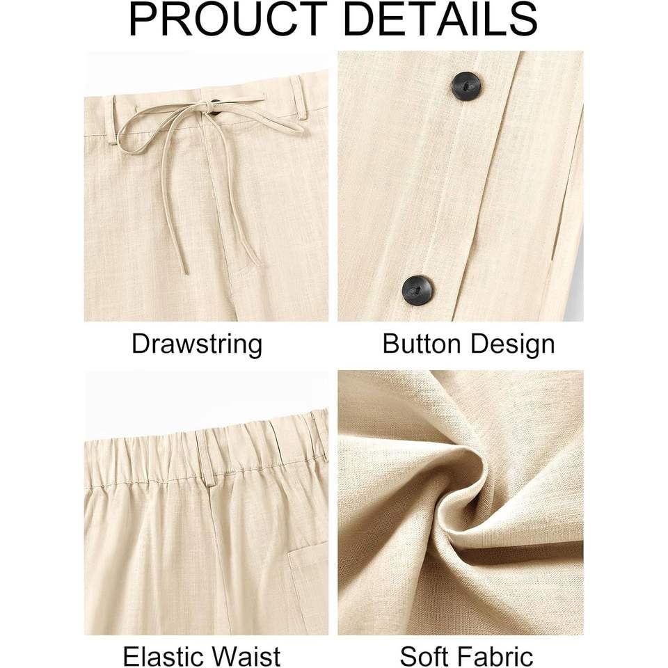 Paslter กางเกงผู้ชายผ้าลินินผ้าฝ้ายแบบผูกเชือกเอวยางยืดแบบลำลองกางเกงโยคะชายหาดชายหาดที่มีน้ำหนักเบาปรับแต่งได้สำหรับฤดูร้อน