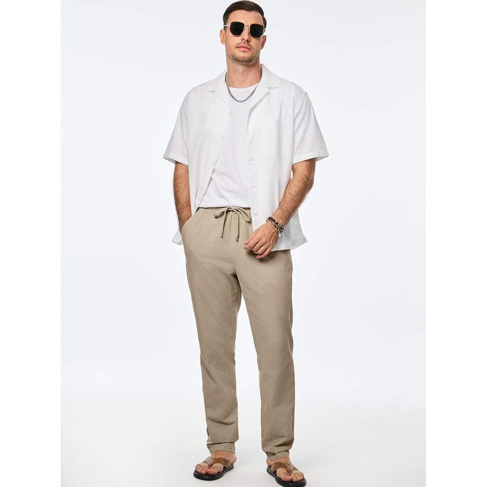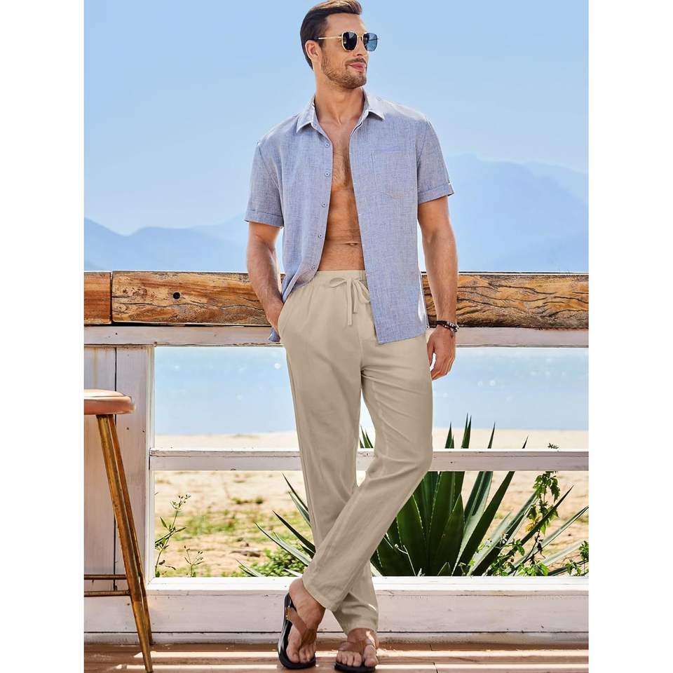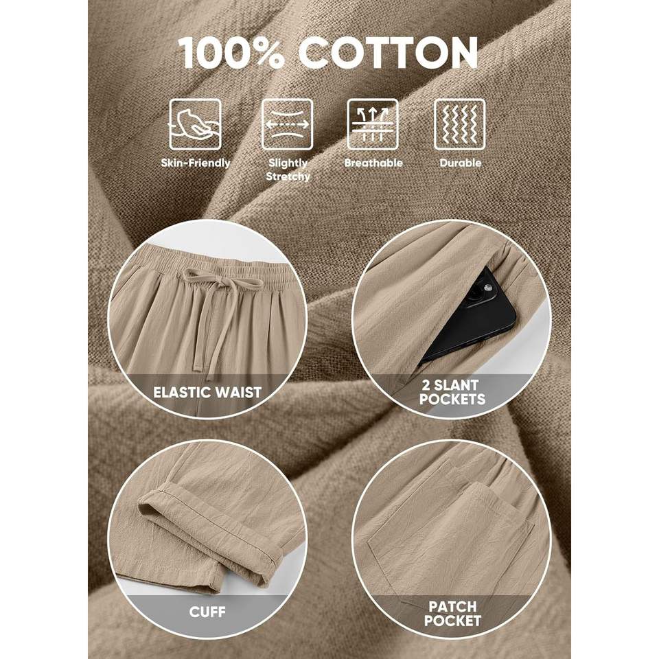 2025กางเกงผ้าฝ้ายผู้ชายกางเกงเอวยางยืดแบบลำลองมีซิปไซส์ XL น้ำหนักเบาชายหาดฤดูร้อน