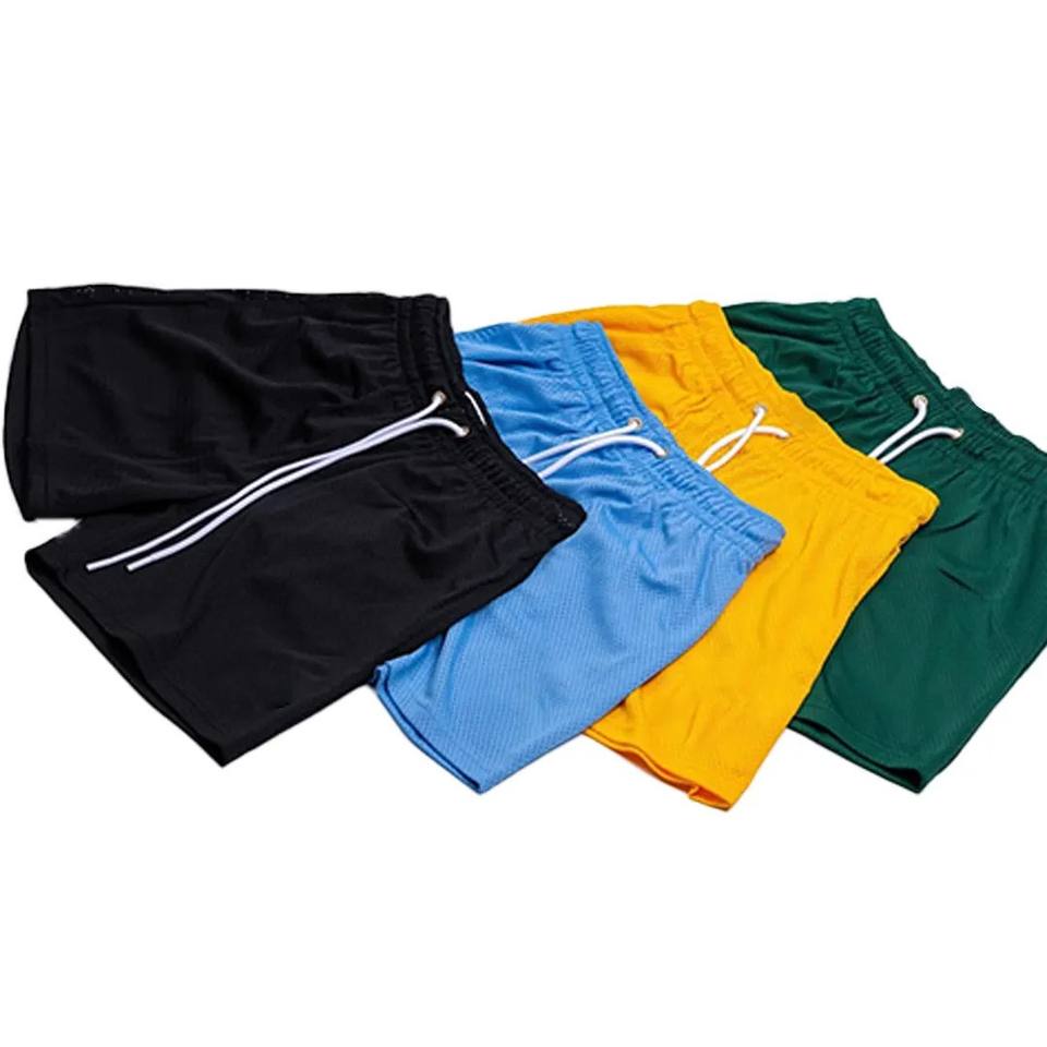 กางเกงขาสั้นตาข่ายสำหรับเล่นกีฬาของผู้ชาย2025ผ้าโพลีเอสเตอร์หนาผ้าฝ้าย100% ออกแบบโลโก้ได้ตามต้องการ