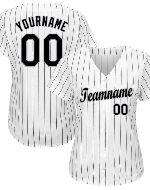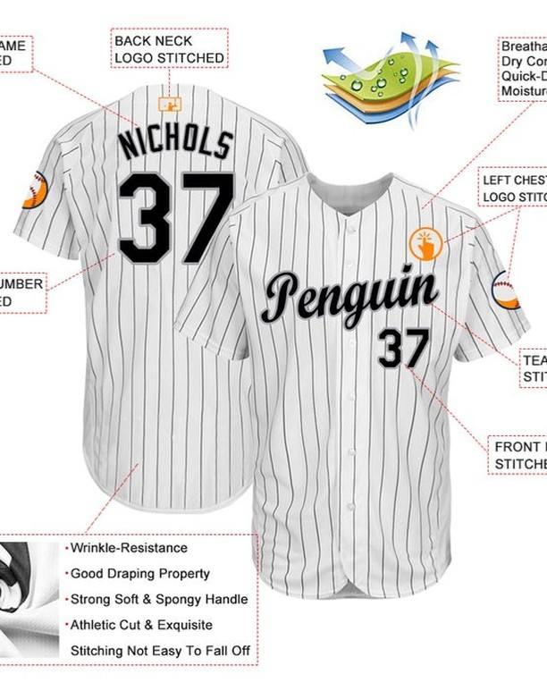 Product Name:White Black Pinstripe Black-Gray Baseball Jersey