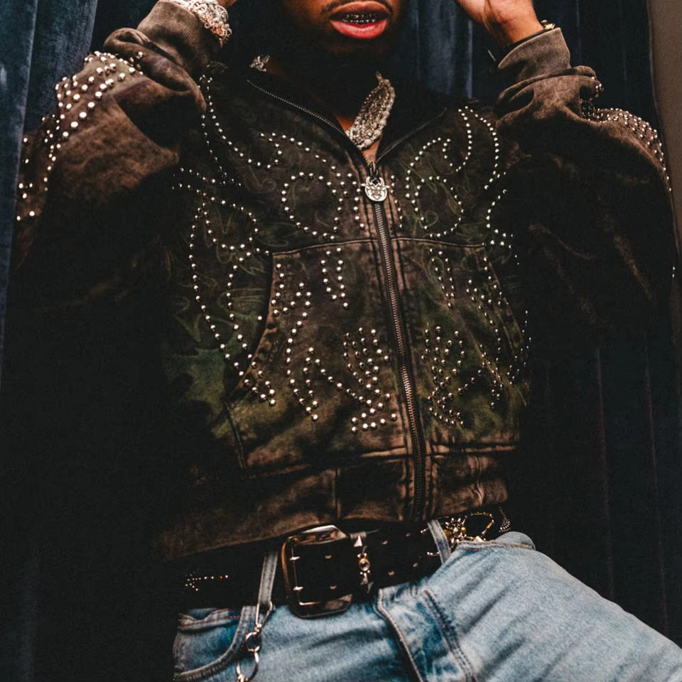 เสื้อฮู้ดแขนยาวโชว์ไหล่สำหรับผู้ชาย2025เสื้อสวมหัวเสื้อฮู้ดผ้าซักกรดดีไซน์พลอยเทียมออกแบบได้ตามต้องการโลโก้