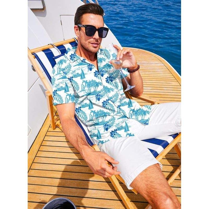 2025เสื้อเชิ้ตฮาวายติดกระดุมลำลองลายดอกไม้สำหรับผู้ชายเสื้อชายหาดแขนสั้นแบบเขตร้อนสำหรับวันหยุดขนาด6XL