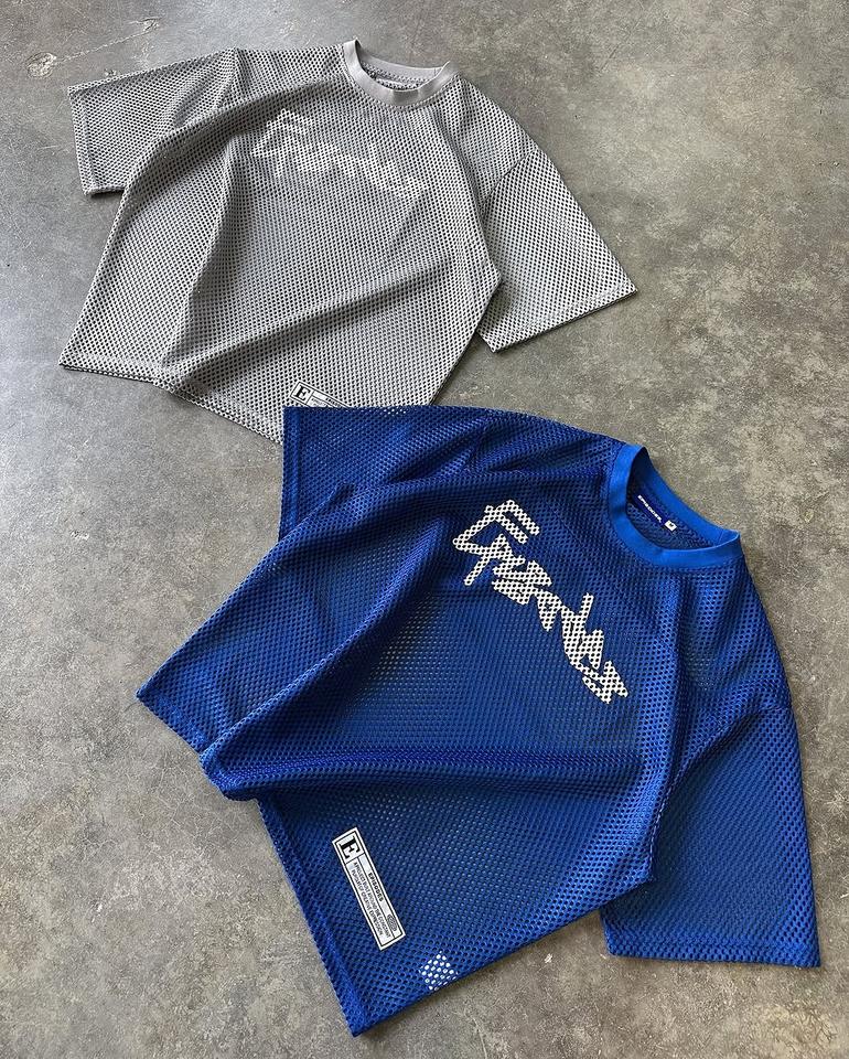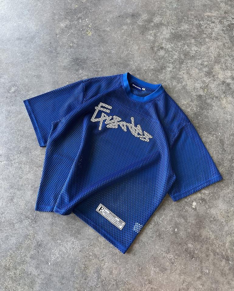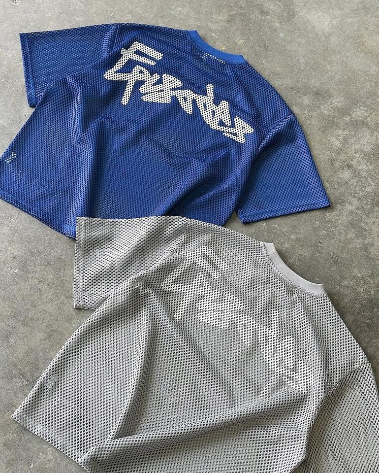 2025เสื้อฟุตบอลผู้ชายเสื้อครอปโอเวอร์ไซส์ผ่าไหล่เสื้อตาข่ายกีฬาทรงหลวมพิมพ์ลายพรางเสื้อถักนิตติ้ง