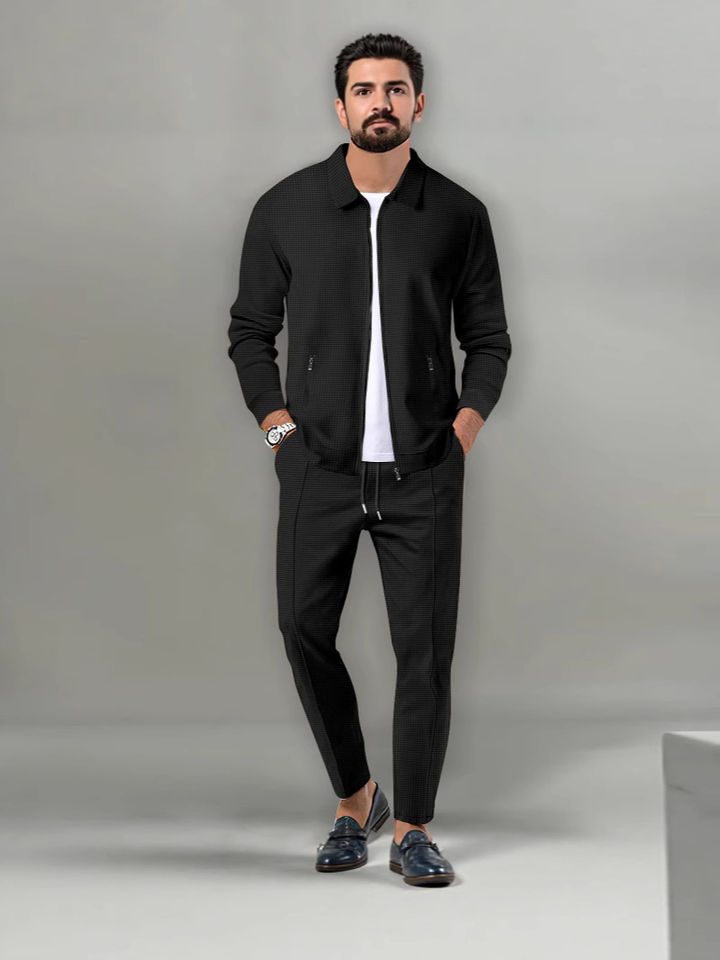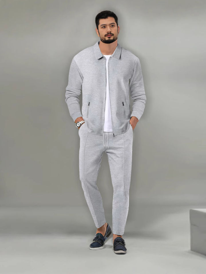 ชุดสูทผู้ชายทรงสลิมฟิตสำหรับธุรกิจ ปี 2025 ระบายอากาศได้ดี เหมาะสำหรับฤดูร้อน มีซิป กระเป๋าผ้าลายวาฟเฟิล ทรงหลวมแบบเยาวชน นำเข้าจากต่างประเทศ